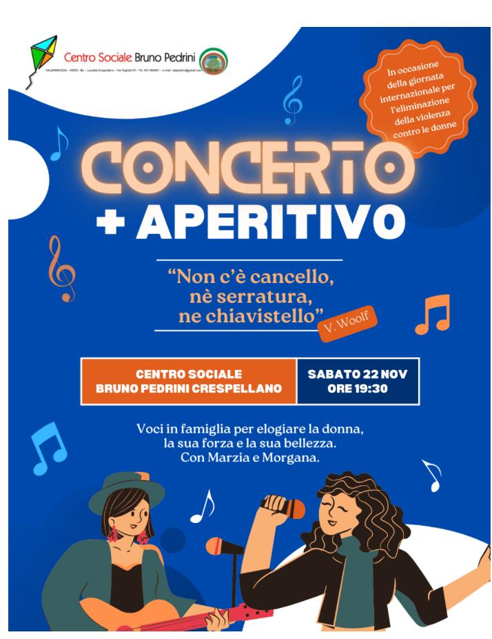 Concerto, aperitivo e mostra sabato 22 novembre ore 19.30 centro sociale Pedrini, Crespellano